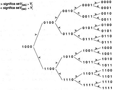 Prendiamo l'esempio di un ADC a 4 bit. Si parte da 1000. Se la tensione