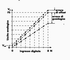 La curva caratteristica di un D/A è idealmente è una gradinata di valori proporzionali alla codifica binaria, si presuppone che le resistenze siano perfettamente identiche e che gli interruttori abbiano resistenza infinita se aperti e nulla se chiusi. Ci sono naturalmente vari tipi di parametri ed errori di cui va tenuto conto: