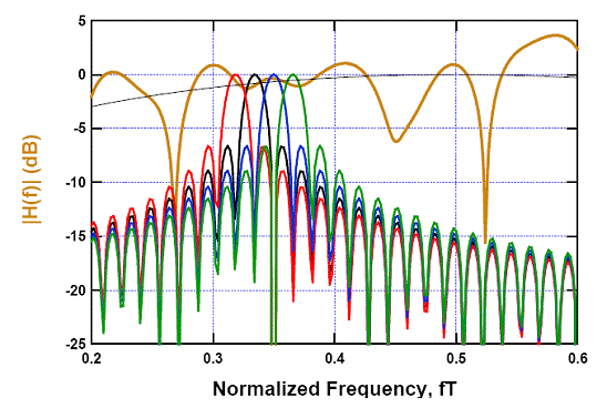 Poiché comunque l'andamento della risposta in frequenza del canale è arbitrariamente variabile e deve essere compensato sottoportante per sottoportante, conviene introdurre la risposta del canale modificata dall'errore di sincronismo