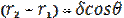 Inoltre, poiché δ è piccolo rispetto a r (cioè il punto P è assai lontano rispetto alla lunghezza dell'asse del dipolo), gli angoli θ e θ' si possono ritenere uguali, per cui dalla nozione trigonometrica secondo cui un cateto è uguale al prodotto dell'ipotenusa per il coseno dell'angolo adiacente si ha: