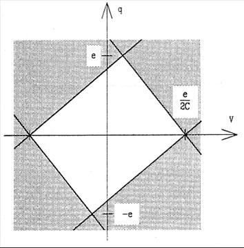 Si può cambiare la carica nell'isola con un evento di tunneling attraverso la prima o la seconda giunzione, per cui si ha (si noti che, come anticipato, è stata eliminata la dipendenza dalla tensione):