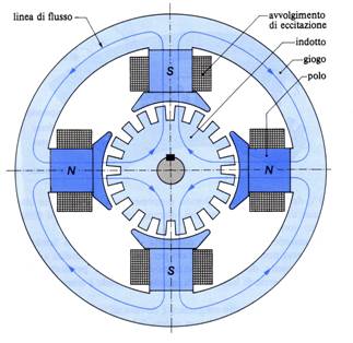 induttore eccitato in corrente continua Ie che ha lo scopo di