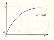 L'andamento di tale caratteristica è quello tipico dei materiali ferromagnetici, la corrente di eccitazione è proporzionale al campo magnetico, la f.e.m. è proporzionale al flusso e quindi all'induzione.