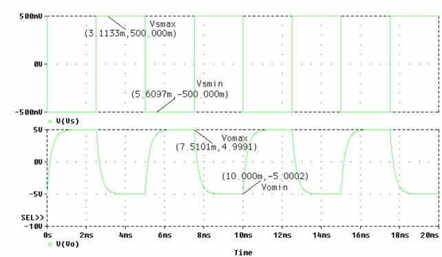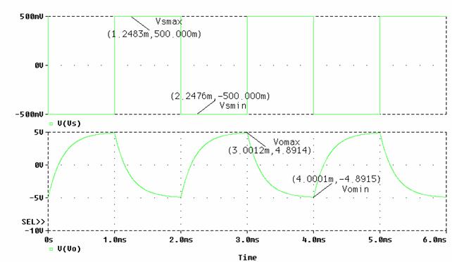 Simulazione ad onda quadra con frequenza di 500Hz