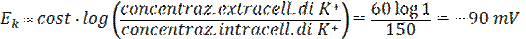 è prossimo a quello di equilibrio del sodio, come calcolabile dall'equazione di