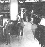 squadra di tecnici che per diversi giorni lavorava a collegare manualmente i