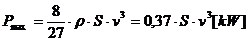 La potenza teorica disponibile in una vena fluida di sezione "S" perpendicolare alla direzione del vento che soffi ad una velocità "v" è data da :