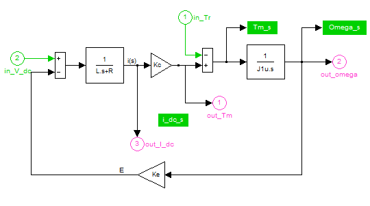 Il modello del motore illustrato precedentemente è implementato in ambiente Simulink di Matlab 6.5 tramite il blocchetto in Figura 2.