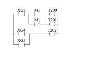 Se il contatore ha valore minore o uguale a 5, il motore M1 dev'essere avviato.Se invece il magazzino contiene più di 5 pezzi, una pressione del pulsante S2 provoca il movimento del nastro 1 e quindi l'ingresso di un pezzo in magazzino. Un tentativo di spegnimento tramite il pulsante S3 non porta alla disattivazione.del motore.