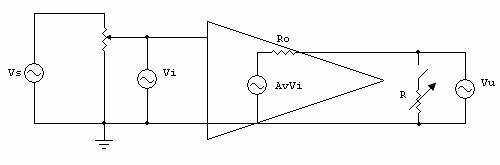 Schema elettrico per il rilievo della resistenza d'uscita dell'amplificatore
