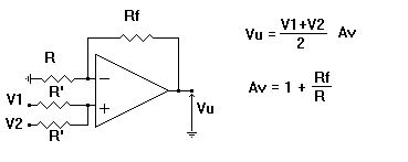 Vu = [(V1+V2)/2][1+(Rf/R)].