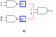 a) Elemento di ritardo puro; b) Macchina combinatoria con ritardo