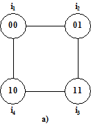 Se, ad esempio, in fig. 7.1a) fosse prevista anche la transizione i1→i3, si potrebbero alterare i dati del progetto originario, in modo che tale transizione avvenga come i1→i2→i4. Ovviamente, tale soluzione è possibile solo in casi particolari; con riferimento all'esempio, ciò si verifica se il nuovo stato di uscita f(i2) che così viene ad aggiungersi nella transizione il→i3 non influisce sul sistema nel quale la macchina è inserita, o perché uguale ad f(i1), o perché uguale ad f(i3) o perché indifferente sul comportamento del sistema.