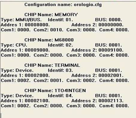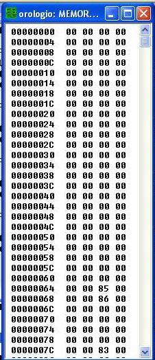 Attivando la finestra "MEMORY" dal menù "memory" si seleziona poi "show ROM" ed in seguito sempre da questo stesso menù , si sceglie "load memory" e si carica il file "orologio.mem" che contiene la tabella delle eccezioni.