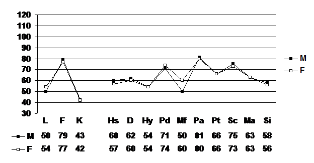 Alcuni risultati confermano tuttavia le indicazioni offerte dai lavori di Megargee, come l'elevazione delle scale F, 4, 6 e 9. I codici maggiormente rappresentati nella popolazione carceraria in esame risultano essere il 4-9/9-4 (soggetti antisociali che agiscono senza considerare le conseguenze delle proprie azioni e sembrano non apprendere dalle proprie esperienze), il 6-9/9-6 (soggetti eccessivamente sensibili e diffidenti con i quali è molto difficile attuare programmi di cambiamento del comportamento) e il 4-6/6-4 (soggetti immaturi e irresponsabili, non ricettivi al trattamento psicologico).