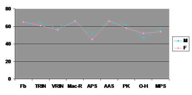 Nell'insieme i dati indicano che sia gli uomini che le donne Item vengono valutati in maniera più favorevole di molti degli altri gruppi. Non mostrano marcate deviazioni di personalità o sintomi di psicopatologia. I loro crimini sono probabilmente più occasionali che espressione di sintomi di disadattamento profondo.