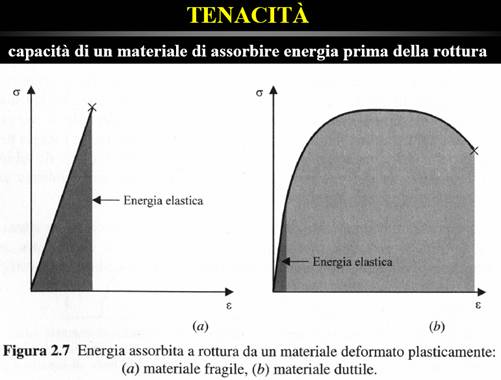 Un materiale duttile assorbe energia prima di rompersi.. questa proprietà è la TENACITA' ed è l'aria sottesa dalla curva, cioè l'energia che spendo per portare a rottura una unità di materiale