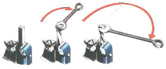 La coppia. Gli sforzi di torsione non possono essere descritti parlando semplicemente di forza. E' necessario riferirsi alla distanza, rispetto all'asse di rotazione, cui viene applicata la forza. Infatti raddoppiando il braccio di leva si ottiene, a paritá di forza, una coppia doppia. Nell'esempio illustrato, ció consente di raddoppiare l'angolo di torsione, cui viene sottoposta la barra d'acciaio.