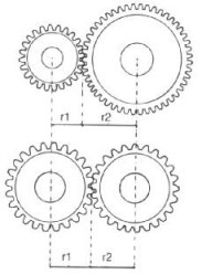 Questa distanza corrisponde al raggio dell'ingranaggio, che definisce l'entità della coppia; infatti modificando i due raggi si ottengono diversi valori della coppia trasmessa: Se i due raggi delle ruote sono uguali, la coppia trasmessa sarà uguale, se il raggio della ruota motrice è minore del raggio della ruota condotta allora la coppia cresce in maniera proporzionale al rapporto r2/r1, con questo metodo si incrementa la coppia, però diminuisce la velocità che si può trasmettere, caso inverso succede se abbiamo la ruota motrice con un raggio maggiore della ruota condotta, in questo caso abbiamo che la coppia trasmessa sarà minore mentre la velocità sarà maggiore.