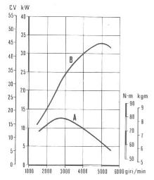Incrementando ulteriormente il regime di rotazione, il lavoro prodotto si riduce drasticamente provocando una decisa flessione della curva di potenza.
