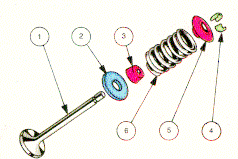 La valvola è composta essenzialmente da una testa a forma di fungo e da uno stelo, o gambo; la testa può essere piana o convessa; lo stelo di forma cilindrica allungata, è la parte che scorre nella guida.