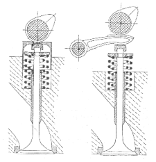 Le valvole vengono sollevate dalle loro sedi grazie all'adozione degli eccentrici dell'albero a camme e vengono rinchiuse da molle elicoidali, sia nel caso di distribuzioni ad aste e bilancieri, sia nel caso di distribuzioni mono o bialbero, l'eccentrico non può agire direttamente sullo stelo delle valvole o sull'asta.
