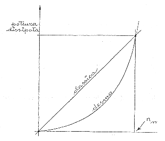 Se si ipotizza che al massimo regime di giri del motore la potenza sia uguali in entrambi i sistemi avremo il seguente diagramma.