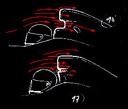 Come premessa, è importante considerare che la pressione dinamica, è pari al quadrato della velocità relativa, moltiplicato per una costante di densità e diviso per due, ovvero considerando il valore di un bar per la pressione atmosferica, a trecento all'ora si ottengono 45 millibar di sovrapressione. In teoria: poiché entrano in ballo altri fattori, come la temperatura (meglio che l'aria sia più fredda possibile, perché la densità è maggiore), la forma dell'airscoop (per questo motivo negli ultimi anni si perdono molte ore in galleria del vento per definire questo particolare) e l'effetto schermo dato dalla testa del pilota, specie se è alto. Con questi problemi i millibar di sovrapressione si riducono ad una ventina, inoltre per il calcolo del ram jet si deve studiare un'opportuna forma del condotto per incrementare la potenza. A trecento all'ora, si arriva ad un guadagno del 3.2% 3.5% che per potenze odierne di 800 CV sono quasi 30 CV.