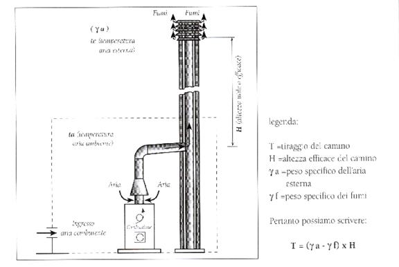 all'altezza utile del camino ed alla differenza tra la densità media dei fumi e