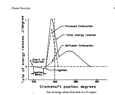 - l'inizio dell'iniezione (o lo scoccare della scintilla) vengono regolati in modo che il picco di pressione prodotto dalla combustione si verifichi leggermente dopo il PMI, per evitare che si verifichi prima (con possibili contraccolpi sul motore): cioè si sposta volutamente il picco nella fase di espansione, ma in tal modo la curva risulta più bassa, e così pure il rendimento.