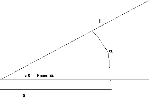 Il lavoro è il prodotto dell'effetto complessivo di una forza rispetto allo spostamento di un corpo durante l'applicazione della forza stessa. Quindi, nel caso di una forza costante F che agisce su un oggetto mentre percorre una distanza x, il lavoro compiuto dalla forza è il prodotto della sua componente Fs lungo lo spostamento per l'intensità dello spostamento: F=Fx s; se F forma un angolo a con s, si avrà Fs=Fcosa, ed il lavoro può essere scritto L=Fscosa