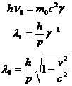Se la particella è in movimento un ragionamento relativistico porta a concludere che la vibrazione appare ad un osservatore fisso come un' onda che si muove con velocità maggiore di quella della particella: