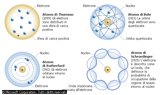 Il modello atomico attuale è il risultato di successivi miglioramenti ottenuti dai fisici grazie alla disponibilità di dati sperimentali sempre più accurati. Il modello di Thompson prevedeva che gli elettroni fossero distribuiti in una sfera di carica positiva. Rutherford fu il primo a comprendere che la carica positiva era invece concentrata al centro dell'atomo (nucleo), mentre riteneva che gli elettroni orbitassero nello spazio ad essa circostante. Bohr andò oltre, introducendo il concetto di quantizzazione delle orbite elettroniche. Schrödinger infine rivoluzionò l'idea di orbita elettronica intendendola non più come la traiettoria fisicamente percorsa dall'elettrone, ma come regione di spazio che possiede la più alta probabilità di essere occupata dall'elettrone.