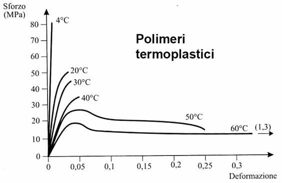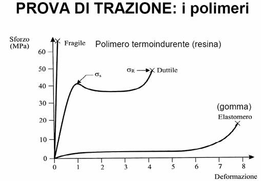 I polimeri sono molto elastici, cioè la fase elastica è molto grande, quello che non ci piace è il fatto che sono molto influenzati dalla temperatura (basta sapere che da 20 a 40 gradi la resistenza cala drasticamente).