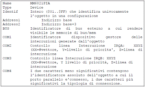 MEM-A rappresenta la memoria del sistema C ed è connessa al BUS che presenta l'id 01 (pari all'identificativo della memoria stessa). Ponendo Com2 a 0010, equivale ad allocare 10Kbyte di RAM, mentre porre Com3 a 0008 equivale ad allocare 8 Kbyte di ROM.