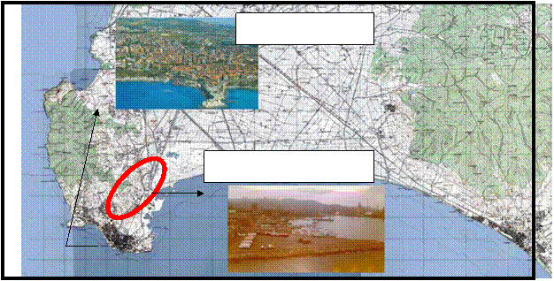 La città di Piombino, è localizzata all'estremo sud della provincia di Livorno, è situata lungo la costa tirrenica, proprio di fronte all'Isola d'Elba, alla base di un promontorio la cui altezza massima non supera i 300 m e al margine di un'area pianeggiante denominata Val di Cornia (chiamata così perché è la pianura alluvionale del fiume Cornia). Subito a sud del promontorio vi è un ampio golfo, il golfo di Follonica, dove sono situate lungo la costa, per lo più a ridosso dell'abitato di Piombino, tutte le principali attività industriali della zona (Figura 1.3-1. . In alcuni quartieri della città è possibile trovarsi a poche centinaia di metri dai forni per la produzione del coke, dai cumuli di stoccaggio del carbon fossile o dai convertitori per la trasformazione dell'acciaio. Dal lato opposto dell'abitato, invece, l'impatto della vasta zona industriale risulta seppur presente, molto attenuato, tanto che Salivoli è un quartiere turistico.