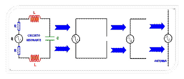 L'antenna da un punto di vista elettrico, si comporta come un circuito risonante serie, come può intuirsi dalle modifiche indicate nella sequenza seguenti dove, partendo da un circuito RLC serie a componenti discreti, si va sempre riducendo il valore dell'induttanza, della capacita e della resistenza del circuito fino ad ottenere un circuito a componenti concentrate che corrisponde ad un antenna.