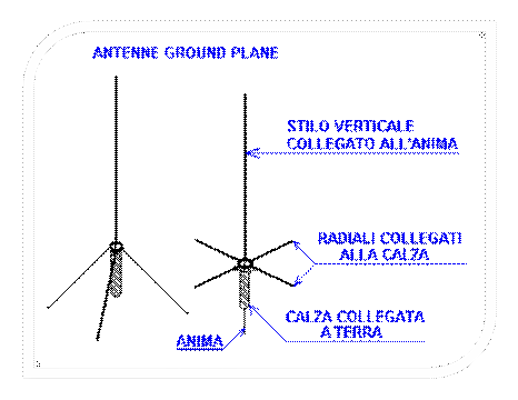 Le antenne Ground plane sostituiscono la superficie riflettente del terreno utilizzata dall'antenna Marconi con una schiera di radiali che vengono usate dai CB e dai radioamatori.