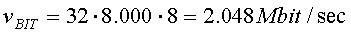 Poiché vengono trasmessi 32 canali con 8000 campioni al secondo, ed ogni canale contiene 8 bit, ogni secondo vengono trasmessi un numero di bit: