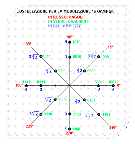 La modulazione 16 QAMPSK è una modulazione numerica di ampiezza e fase a 16 livelli diversi.