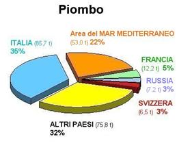 A partire dagli anni '90 le emissioni di piombo, ed in parte anche cadmio, hanno subito una considerevole riduzione (Fig. 13). Dalla figura 14 emerge inoltre come le emissioni italiane di questi due metalli contribuiscano al trasporto transfrontaliero, interessando soprattutto il bacino del mar Mediterraneo (Harmens et al., 2007, Migon et al., 2007). All'incirca il 65% del piombo ed il 68% circa del cadmio emessi in Italia viaggiano oltre i confini, mentre a livello nazionale il contributo è pari a circa il 35% per il piombo ed il 32% per il cadmio.