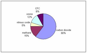 Ma queste periodiche variazioni non sono sufficienti per giustificare il surriscaldamento globale degli ultimi anni. Per questo gli scienziati ritengono che la causa principale del fenomeno sia l'aumento della concentrazione nell'atmosfera di "gas serra", come anidride carbonica, metano (CH4) e diossido di azoto (NO2) e diversi tipi di clorofluorocarburi (CFC), ancora utilizzati come refrigeranti e propellenti nelle bombolette spray in alcune regioni del mondo e gradualmente eliminati a causa del loro effetto distruttivo sullo strato di ozono.