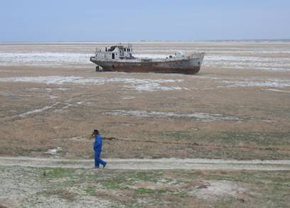 Il lago d'Aral era il quarto tra i più grandi mari interni del mondo. Oggi è quasi del tutto scomparso a causa di un piano d'irrigazione che ha deviato l'acqua che lo alimentava per creare coltivazioni di cotone nel deserto.