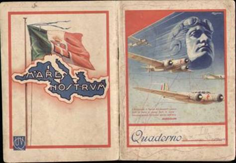 Attraverso le copertine dei quaderni è evidente il coinvolgimento della scuola in temi quali la guerra in Etiopia, la nuova dimensione imperiale del fascismo, la modernità aviatoria, il mito della conquista fascista del cielo e il dominio su quello che sarebbe dovuto tornare ad essere il "mare nostrum".