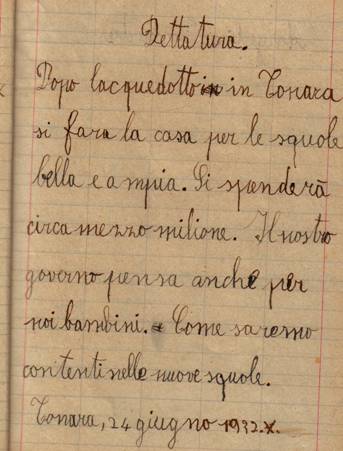 I quaderni sono utili anche per il loro contenuto. Spesso, con la grafia incerta e faticosa di molti bambini, troviamo il riverbero delle tante "parole di regime" che dai maestri sono loro transitate, per essere poi ribadite nei temi, nei diari, nei dettati. Possiamo così leggere, per esempio, cosa scrivevano alcuni bambini di Tonara, in provincia di Nuoro, a proposito delle opere del regime: