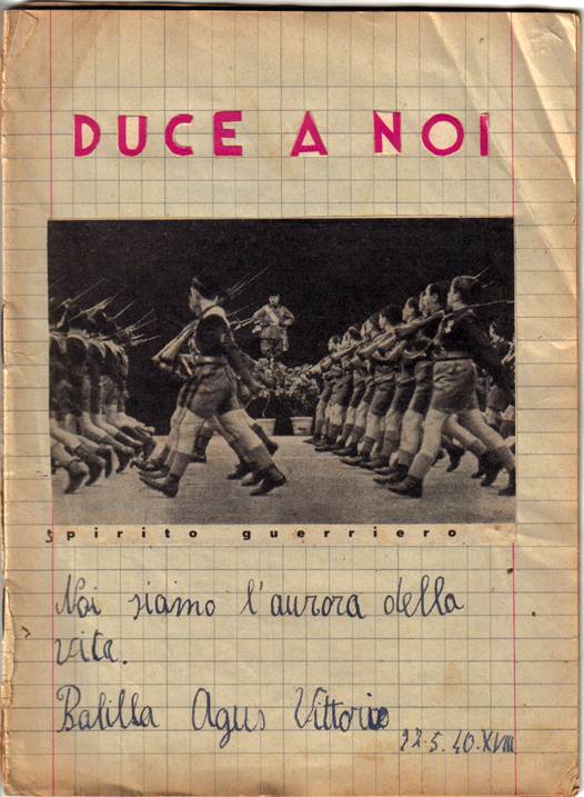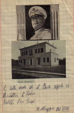 A conclusione della mia ricerca, ho pensato che fosse interessante soffermarsi sugli strumenti utilizzati dalla scuola fascista (testi scolastici, quaderni, diari, pagelle, riviste, ecc.) in cui si esaltava il fascismo sia attraverso le immagini, strumento rapido ed efficace, che attraverso i contenuti.