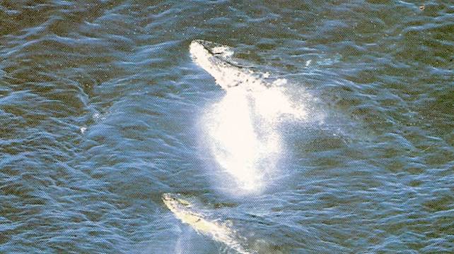 l'immagine rappresenta due balene: grossi animali(lunghi dai 17 ai 24 metri circa).