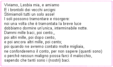 Ocelle: tenero appellativo, diminutivo di "cuore" tipicamente catulliano, sinonimo della cosa più preziosa che ci sia.