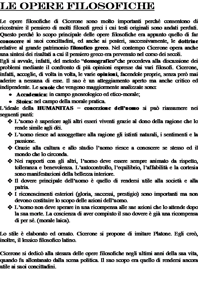 DE OFFICIIS: trattato filosofico a sfondo politico. Intento dell'autore: utilizzare gli strumenti della filosofia greca per difendere le istituzioni dell'oligarchia romana, contro le spinte rivoluzionarie che avrebbero ben presto portato alla formazione dell'Impero.