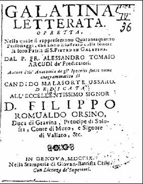 Dopo l'esordio veneziano, nei primi decenni del secolo XVIII ci fu la sua esplosione editoriale con due operette erudite, nelle quali è identificabile un sentimento campanelistico. La prima è nel suo titolo intero: "Galatina letterata. Opretta nella quale si rappresentano 44 personaggi che hanno illustrato colle lettere la loro patria di S. Pietro in Galatina; Del P. Fr. Alessandro Tomaso Arcudi de' Predicatori, autore de "L'Anatomia degl'Ipocriti" sotto nome anagrammatico di Candido Malasorte Ussaro; in Genova, MDCCIX, nella Stamperia di Giovan Battista Celle"[5]. L'opera, che presentava 44 biografie di illustri galatinesi (tra i quali gli Arcudi e poi i Vernaleone, i Mongiò, Ottavio Scalfo e altri) suscitò vivaci proteste tra gli intellettuali e gli accademici galatinesi e salentini. Ma Arcudi non si perse d'animo e rispose alle polemiche con la seconda opera intitolata: "Le due Galatine difese; il libro e la patria; In diversi opuscoli raccolti e dati in luce dal signor Francesco Saverio Volante; in Genova, MDCCXV, nella Stamperia di Giovan Battista Celle". In questo caso l'uso dello pseudonimo non doveva servire a mascherare l'autore, ma era un semplice espediente tecnico per consentirgli di esprimersi in terza persona. Entrambe le opere apparterrebbero alla parentesi genovese dell'Arcudi, anche se, dal D'Afflitto in poi , si è voluto sostenere che le opere genovesi sono un falso editoriale, essendo invece frutto di una tipografia leccese.